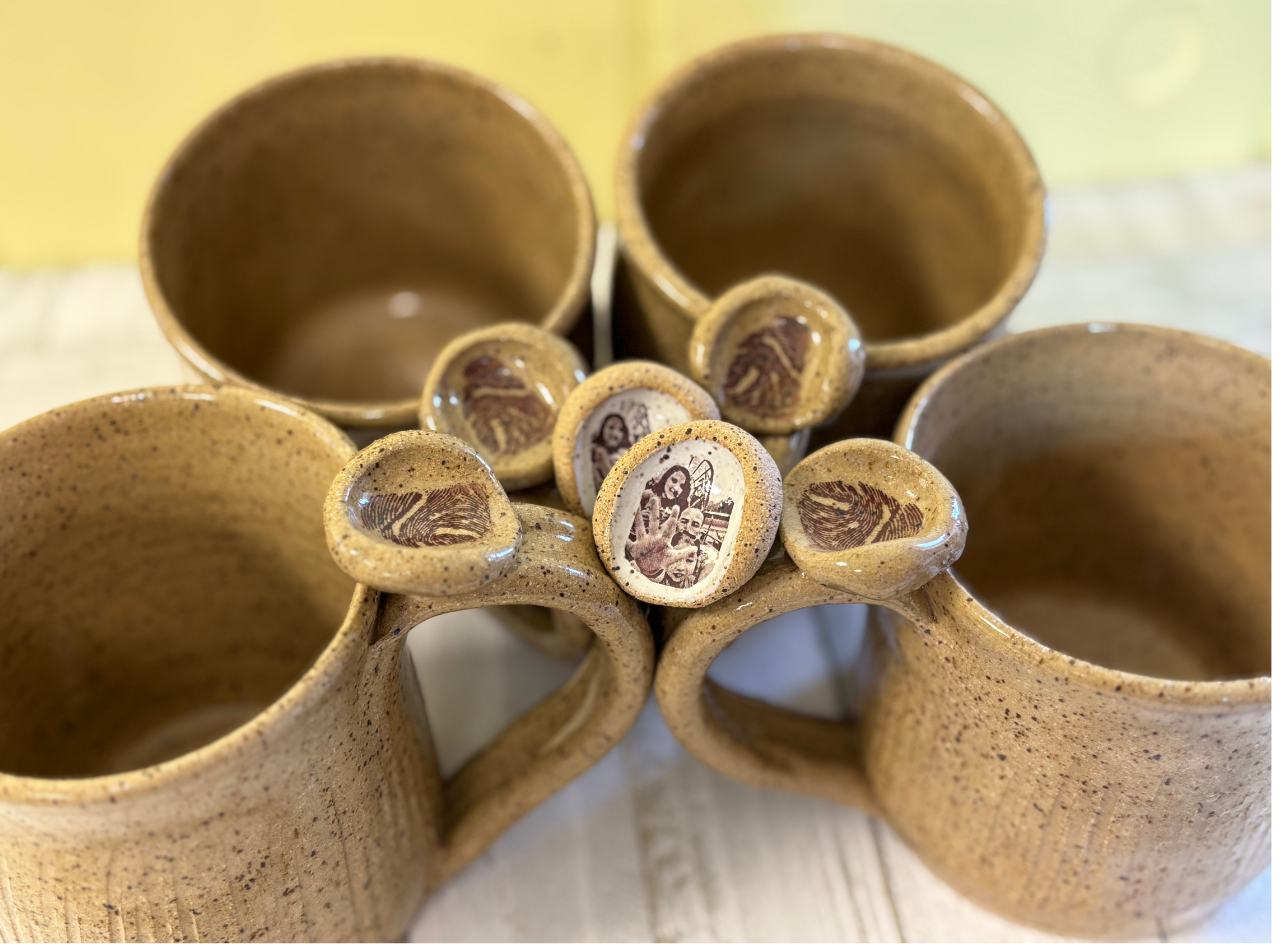 "I’m humbled that the company I own has the privilege of working with this incredibly talented potter who creates beautiful, handcrafted pieces. One of the most meaningful is a coffee mug, featuring the thumbprint of a loved one who has passed, placed just above the handle. This design allows you to hold their memory close with every sip. Not only is her artistry exceptional, but she is also one of the kindest people we’ve had the pleasure of working with. We’re proud to support her business and the incredible work she does." - Edward